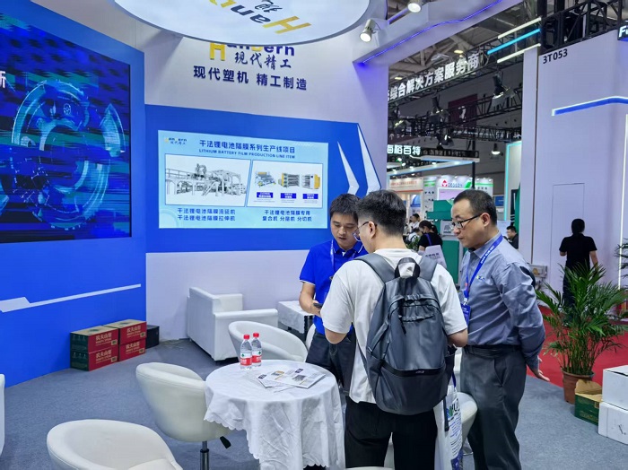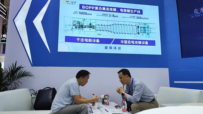 在此次展会上,球赛下注官方网站(简称"现代精工")携自主研发的四大核心设备惊艳亮相,重点展出了包括复合集流体基膜/电容膜生产线、干法电极设备、半固态电池基膜生产线及干法隔膜生产线等高端膜设备。这些设备凭借行业领先的技术含量和国产化突破,成功打破国外技术垄断,现场累计接待专业访客超过200组,其中30余家客户有深度交流的意向。